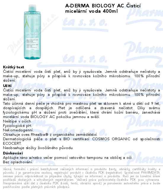A-DERMA BIOLOGY AC Čisticí micelární voda 400ml