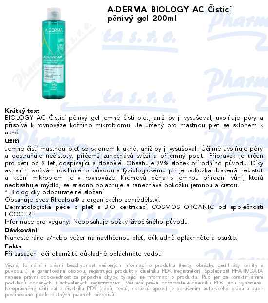 A-DERMA BIOLOGY AC Čisticí pěnivý gel 200ml