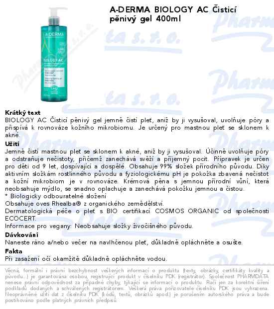 A-DERMA BIOLOGY AC Čisticí pěnivý gel 400ml