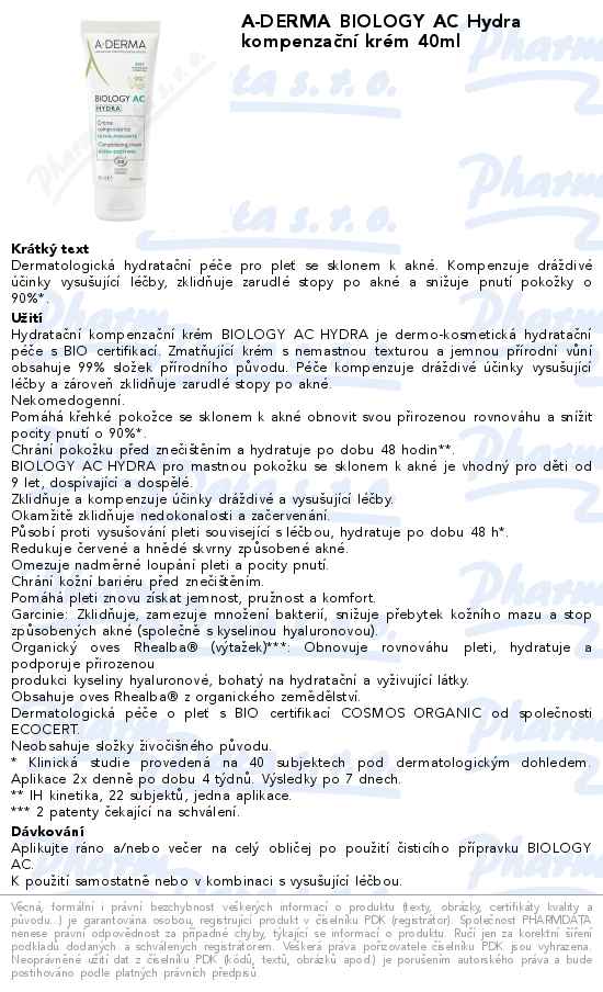 A-DERMA BIOLOGY AC Hydra kompenzační krém 40ml