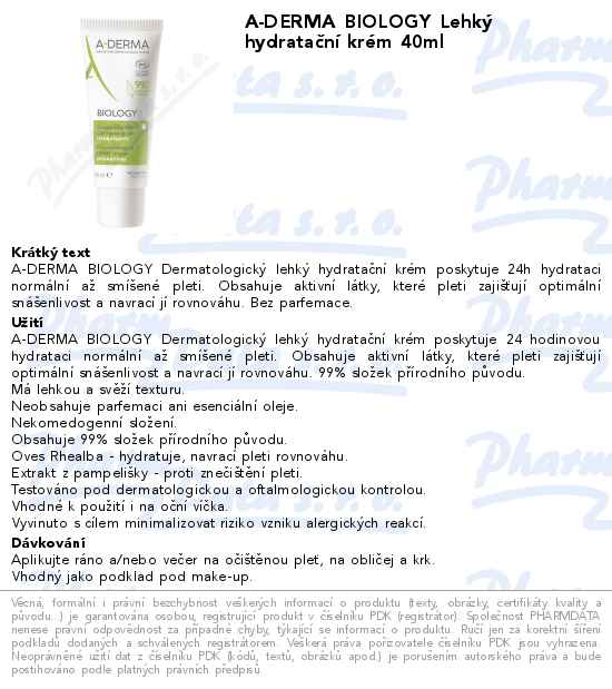 A-DERMA BIOLOGY Lehký hydratační krém 40ml