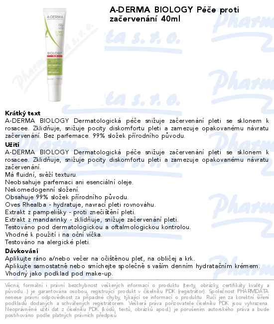 A-DERMA BIOLOGY Péče proti začervenání 40ml