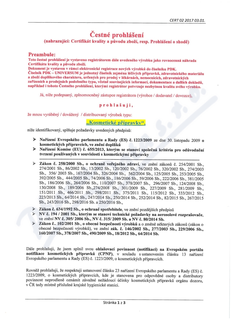 3 strany čestného prohlášení: strana 1, strana 2, strana 3,