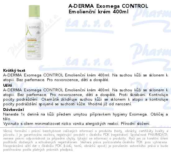 A-DERMA Exomega CONTROL Emolienční krém 400ml