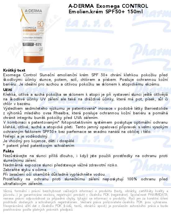 A-DERMA Exomega CONTROL Emolien.krém SPF50+ 150ml