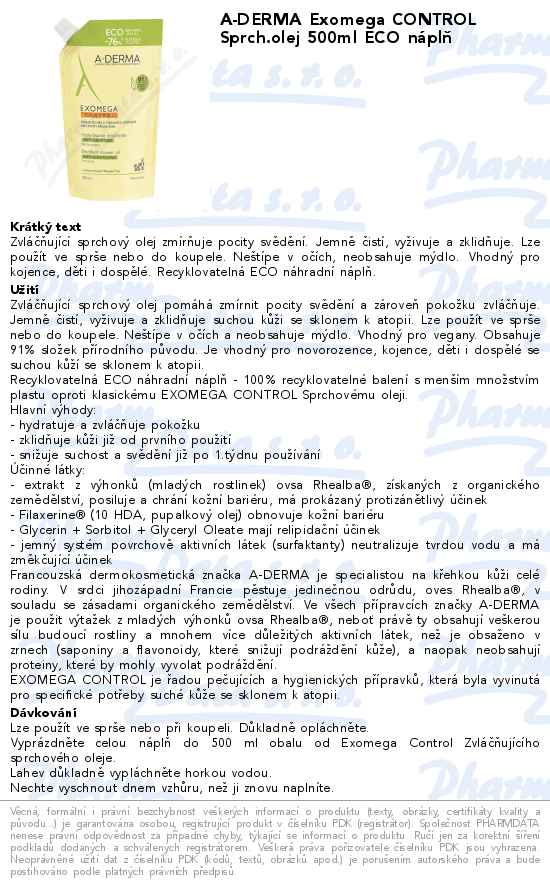 A-DERMA Exomega CONTROL Sprch.olej 500ml ECO náplň