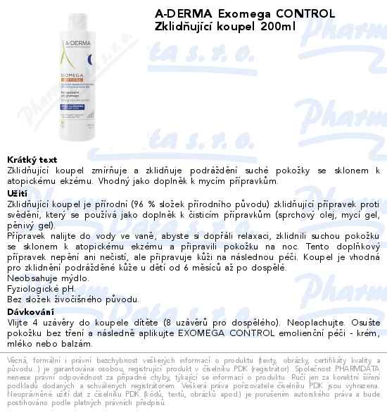 A-DERMA Exomega CONTROL Zklidňující koupel 200ml