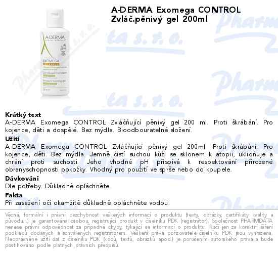 A-DERMA Exomega CONTROL Zvláč.pěnivý gel 200ml
