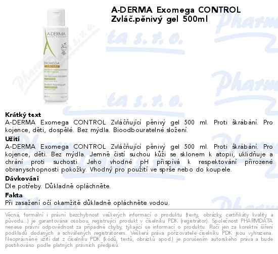 A-DERMA Exomega CONTROL Zvláč.pěnivý gel 500ml
