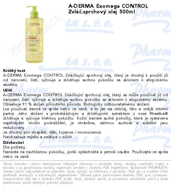 A-DERMA Exomega CONTROL Zvláč.sprchový olej 500ml