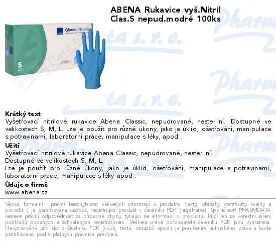 ABENA Rukavice vyš.Nitril Clas.S nepud.modré 100ks