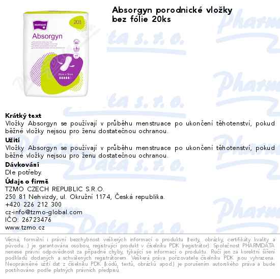 Absorgyn porodnické vložky bez fólie 20ks