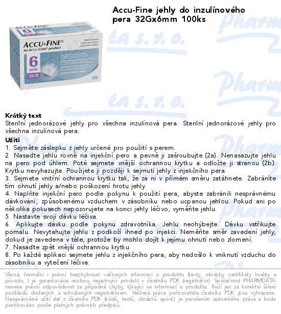 Accu-Fine jehly do inzulínového pera 32Gx6mm 100ks
