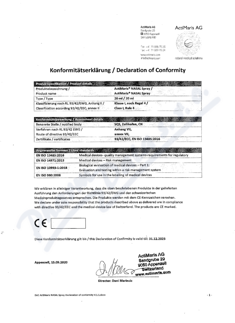 ActiMaris NASAL sprej na záněty infekce 20ml