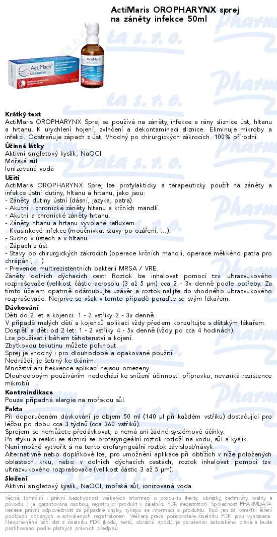 ActiMaris OROPHARYNX sprej na záněty infekce 50ml