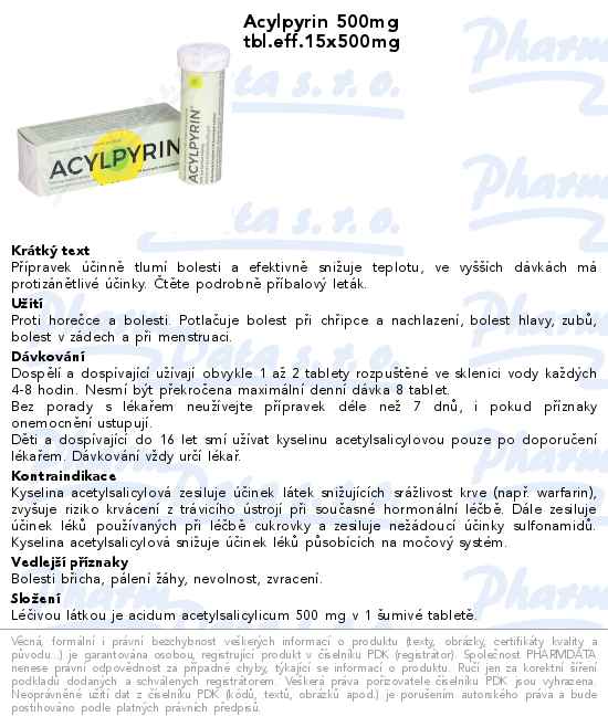 Obsahuje: KYSELINA ACETYLSALICYLOVÁ