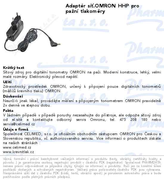 Adaptér síť.OMRON HHP pro pažní tlakoměry