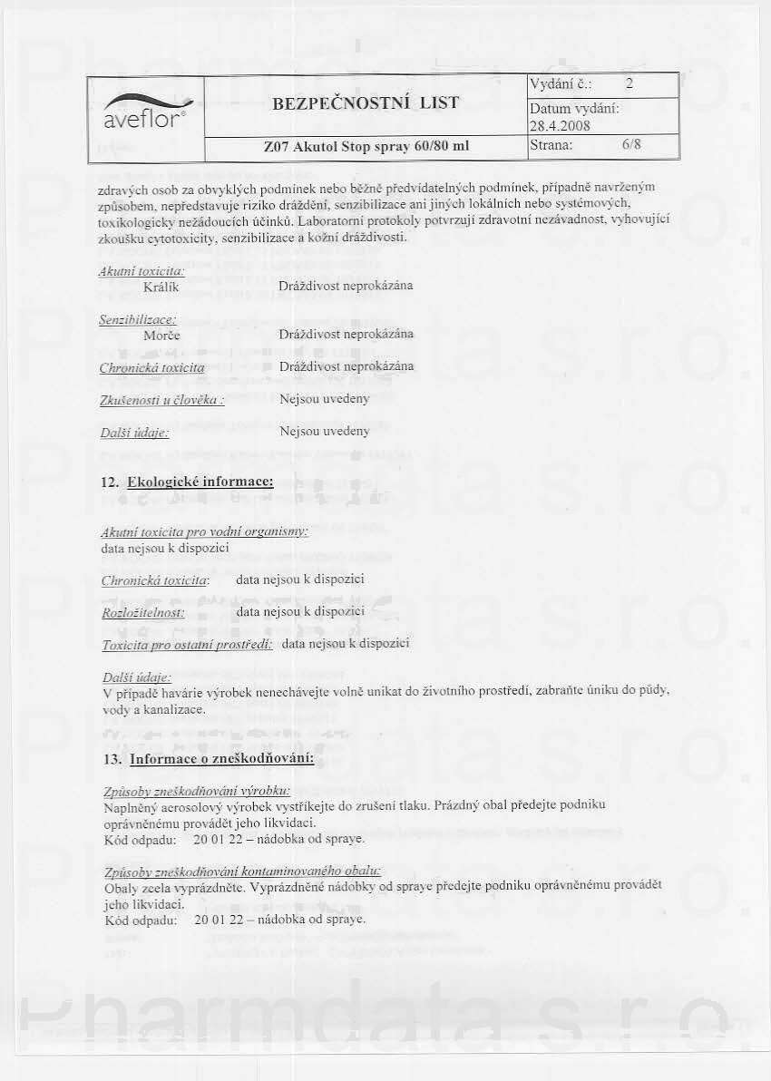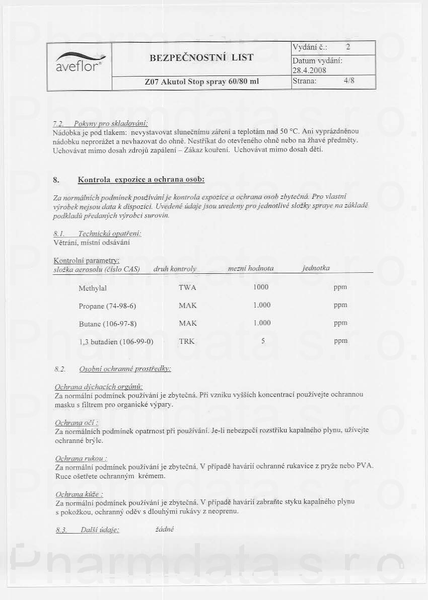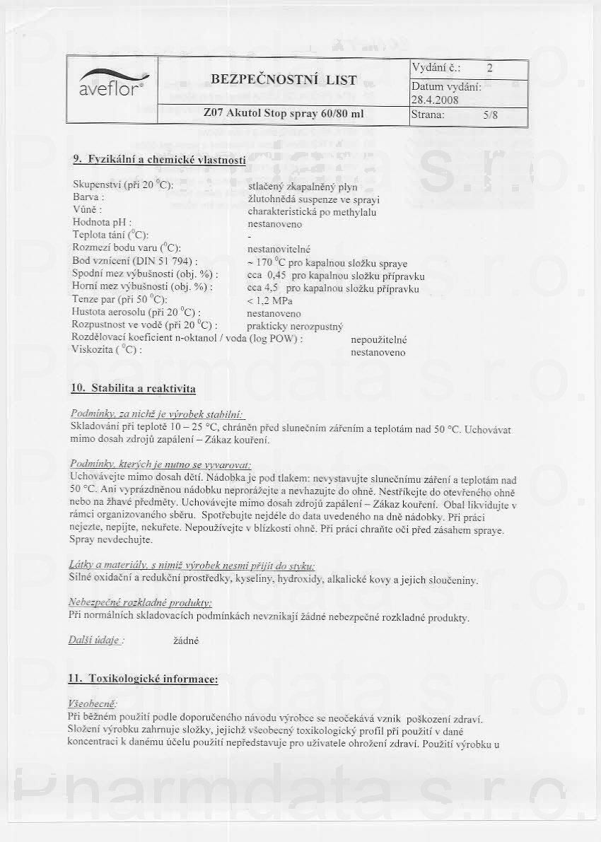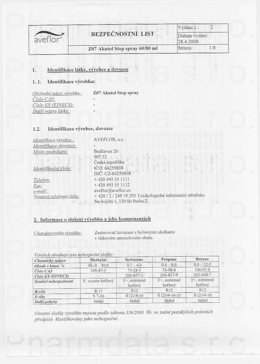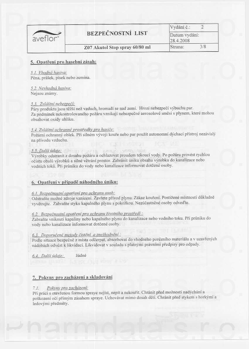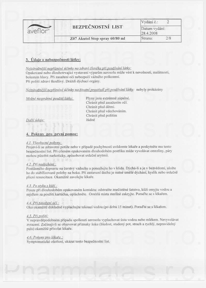 7 strany bezpečnostních listů: strana 1, strana 2, strana 3, strana 4, strana 5, strana 6, strana 7,