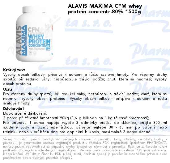 ALAVIS MAXIMA CFM whey protein concentr.80% 1500g