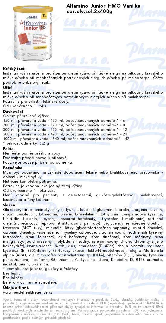Alfamino Junior HMO Vanilka por.plv.sol.2x400g