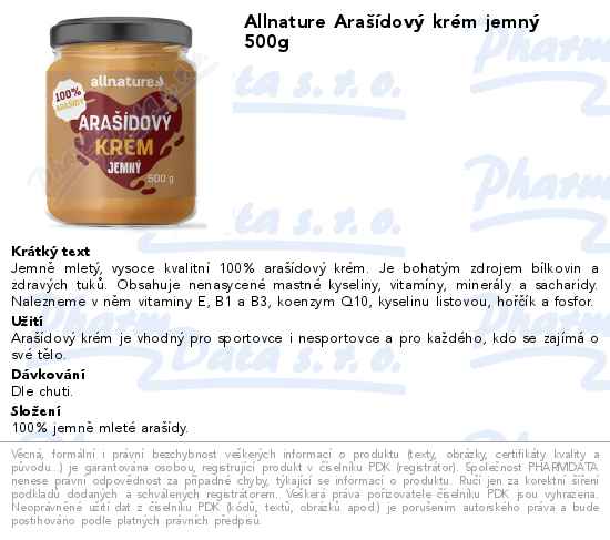 Allnature Arašídový krém jemný 500g