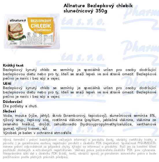 Allnature Bezlepkový chlebík slunečnicový 350g