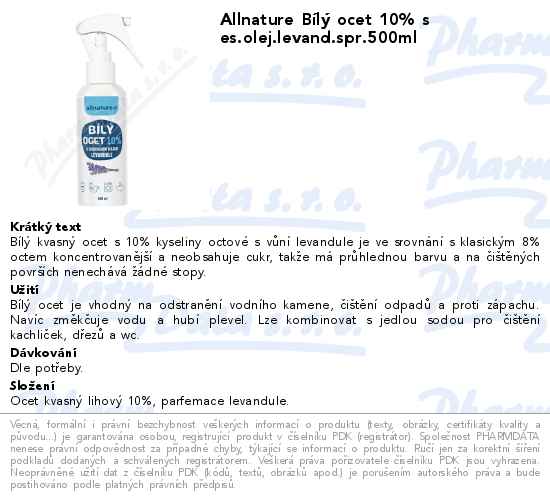 Allnature Bílý ocet 10% s es.olej.levand.spr.500ml
