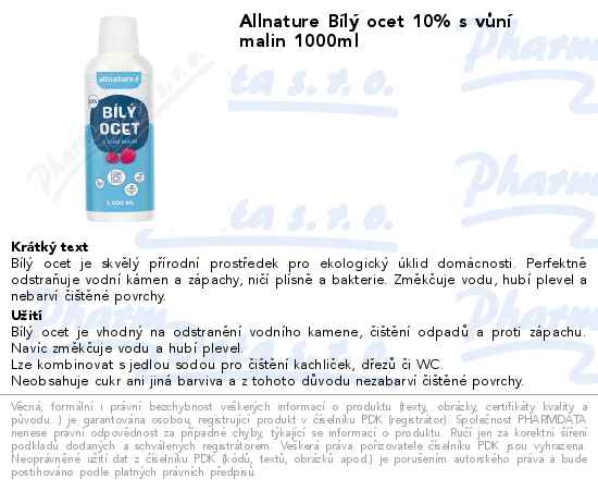 Allnature Bílý ocet 10% s vůní malin 1000ml