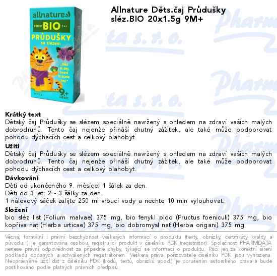 Allnature Děts.čaj Průdušky sléz.BIO 20x1.5g 9M+
