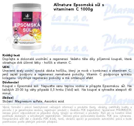 Allnature Epsomská sůl s vitamínem C 1000g