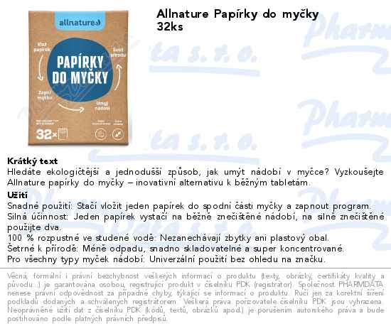 Allnature Papírky do myčky 32ks
