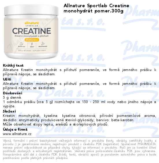 Allnature Sportlab Creatine monohydrát pomer.300g