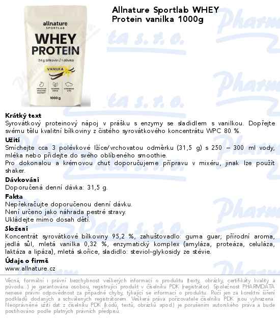 Allnature Sportlab WHEY Protein vanilka 1000g