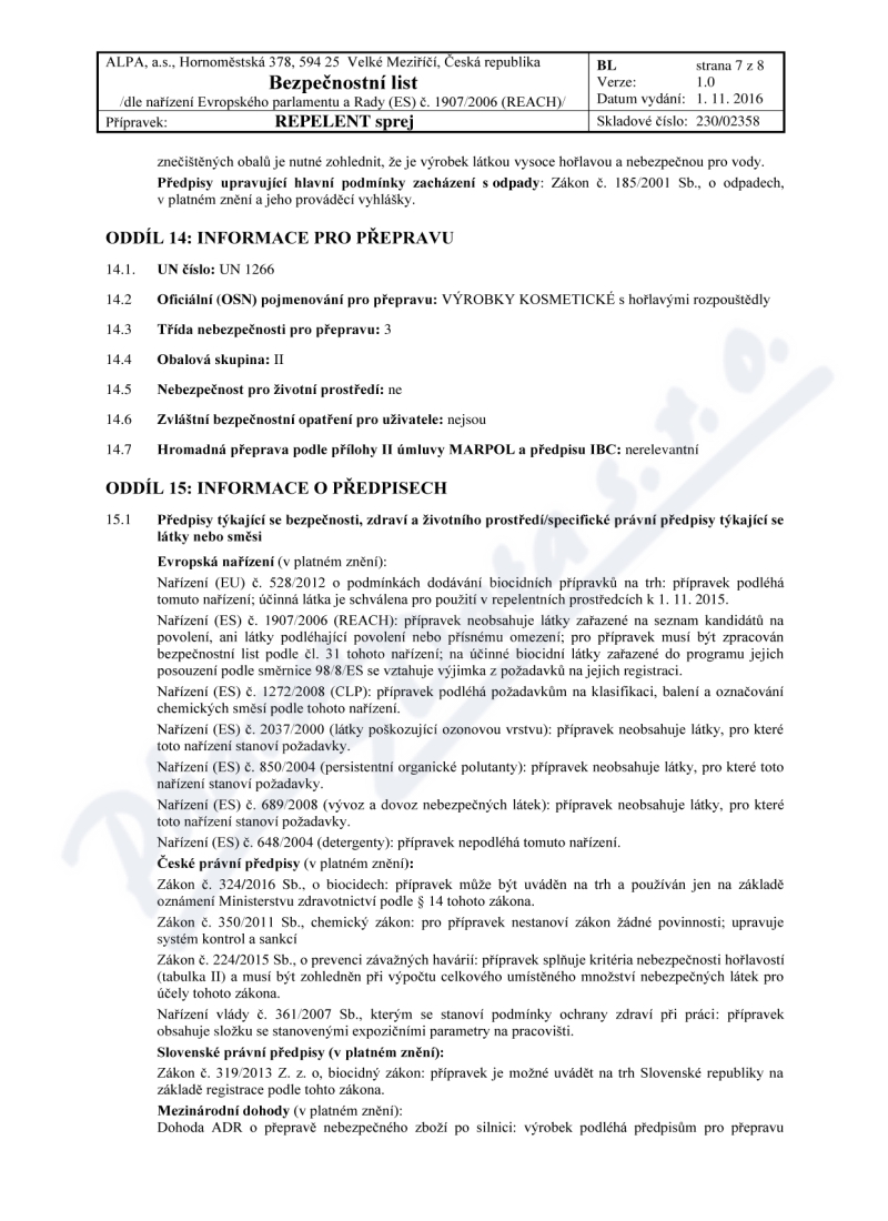 Výrobce: ALPA A.S.