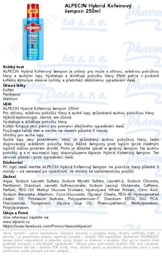 ALPECIN Hybrid Kofeinový šampon 250ml