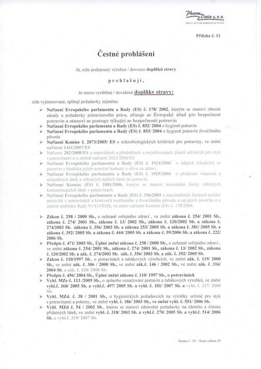 2 strany čestného prohlášení: strana 1, strana 2,