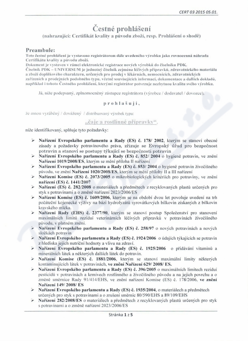 5 strany čestného prohlášení: strana 1, strana 2, strana 3, strana 4, strana 5,