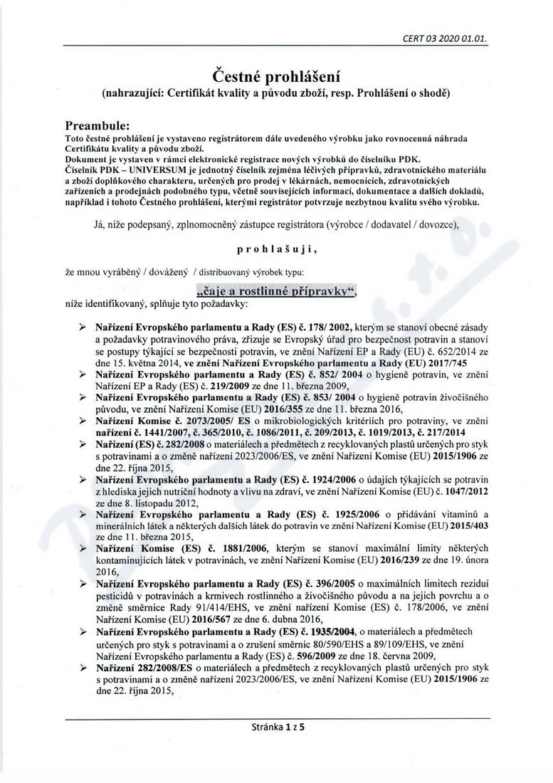 5 strany čestného prohlášení: strana 1, strana 2, strana 3, strana 4, strana 5,