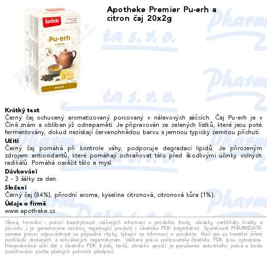Apotheke Premier Pu-erh a citron čaj 20x2g