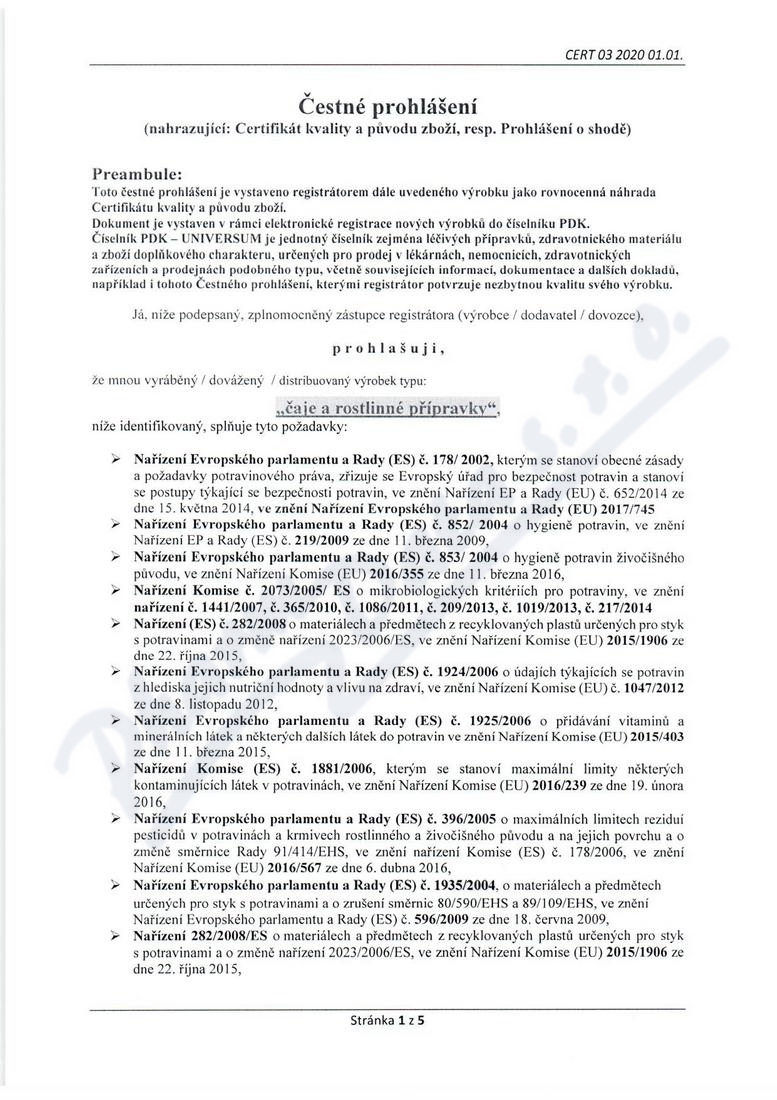 5 strany čestného prohlášení: strana 1, strana 2, strana 3, strana 4, strana 5,