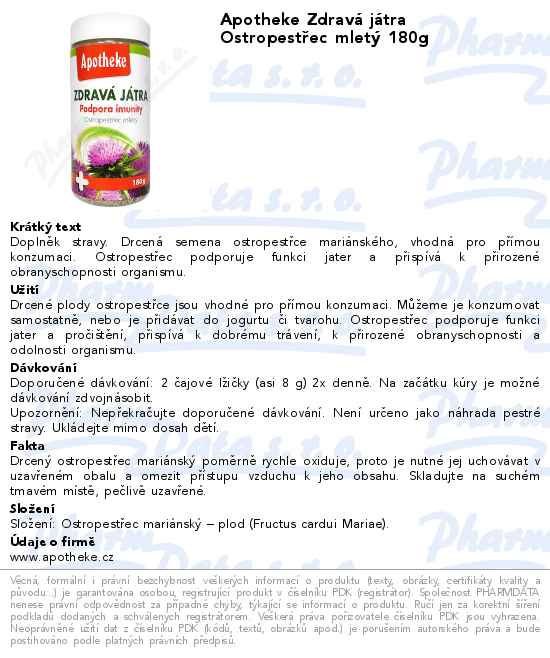 Apotheke Zdravá játra Ostropestřec mletý 180g