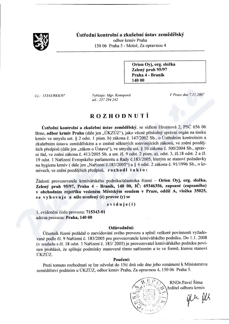 osvědčení hlavního hygienika