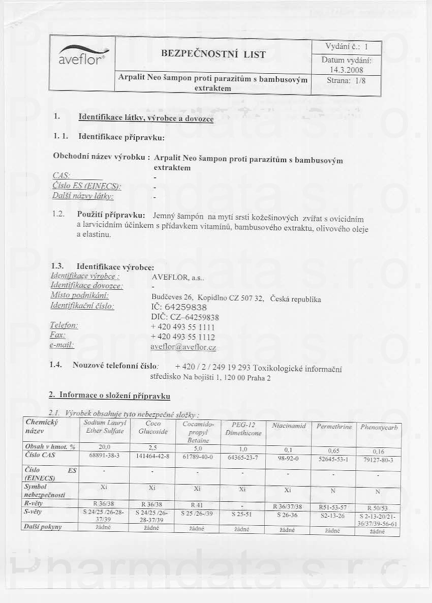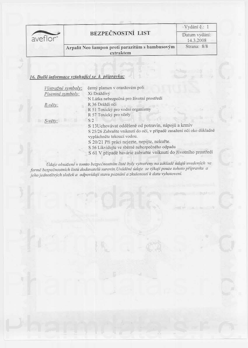 8 strany bezpečnostních listů: strana 1, strana 2, strana 3, strana 4, strana 5, strana 6, strana 7, strana 8,