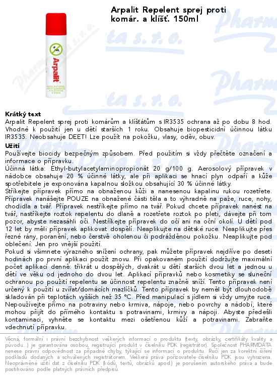 Arpalit Repelent sprej proti komár. a klíšť. 150ml