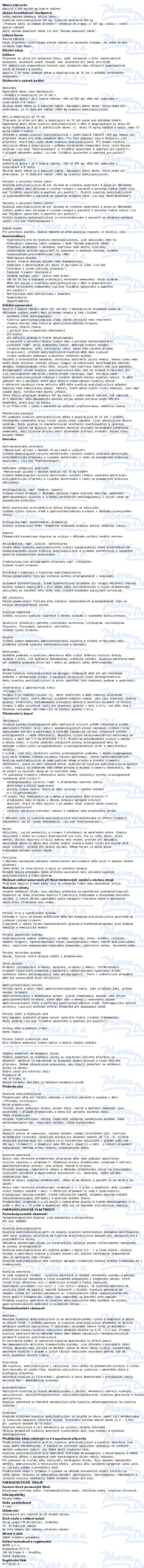 Obsahuje: KYSELINA ACETYLSALICYLOVÁ, KOMBINACE KROMĚ PSYCHOLEPTIK