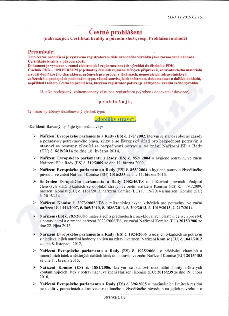 5 strany čestného prohlášení: strana 1, strana 2, strana 3, strana 4, strana 5,