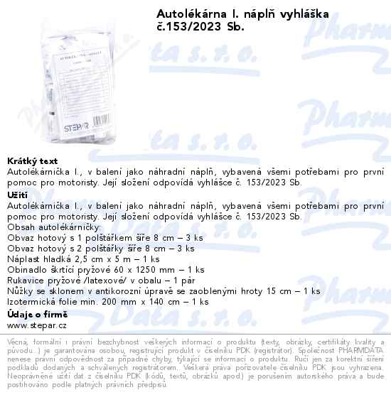 Autolékárna I. náplň vyhláška č.153/2023 Sb.