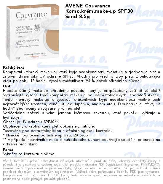 AVENE Couvrance Komp.krém.make-up SPF30 Sand 8.5g