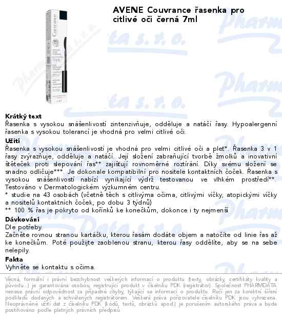 AVENE Couvrance řasenka pro citlivé oči černá 7ml