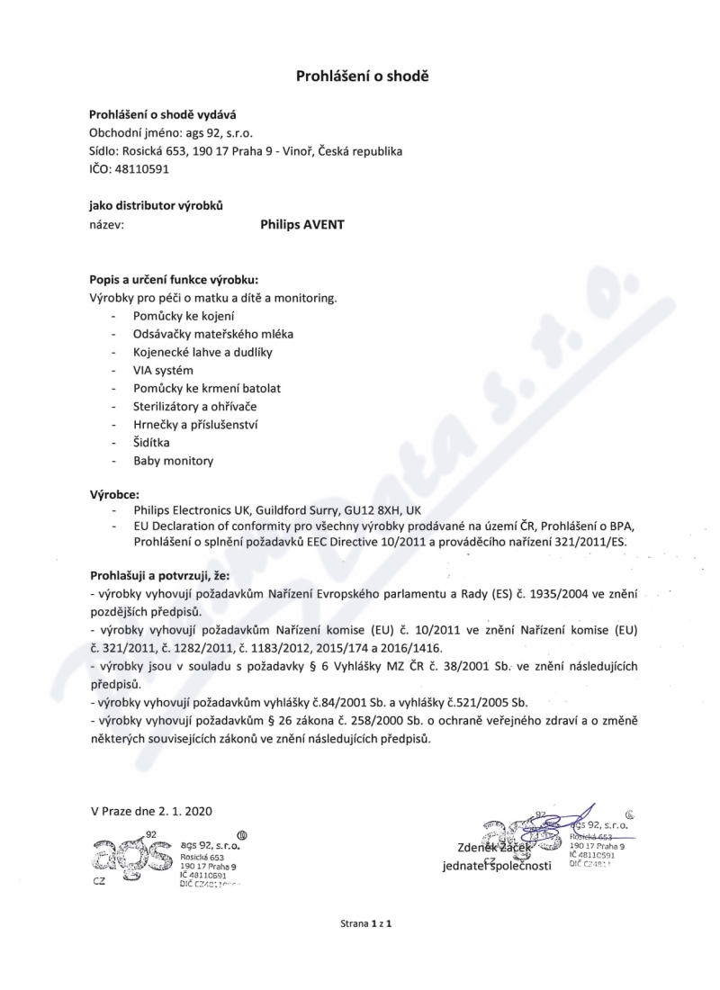 prohlášení o shodě